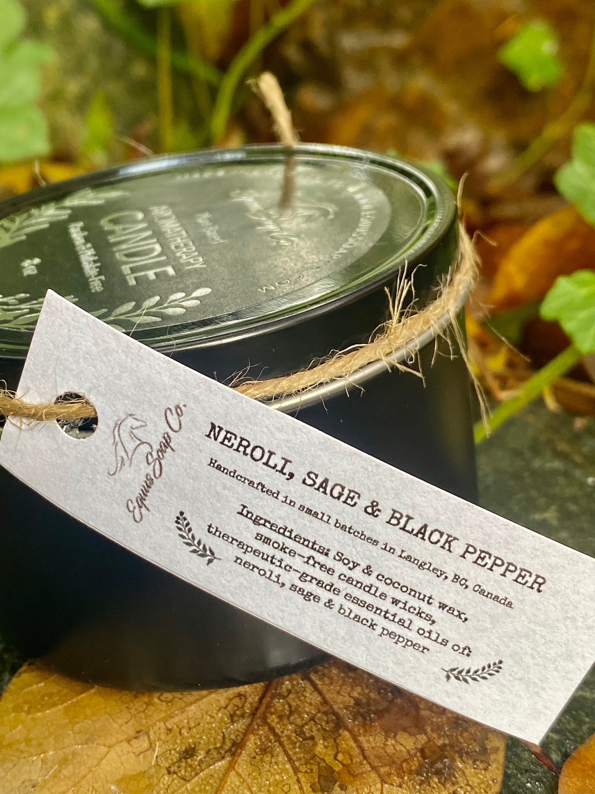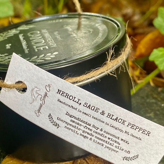 Ingredients: Soy & coconut wax, smoke-free candle wicks, therapeutic-grade essential oils of: neroli, sage and black pepper.