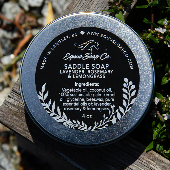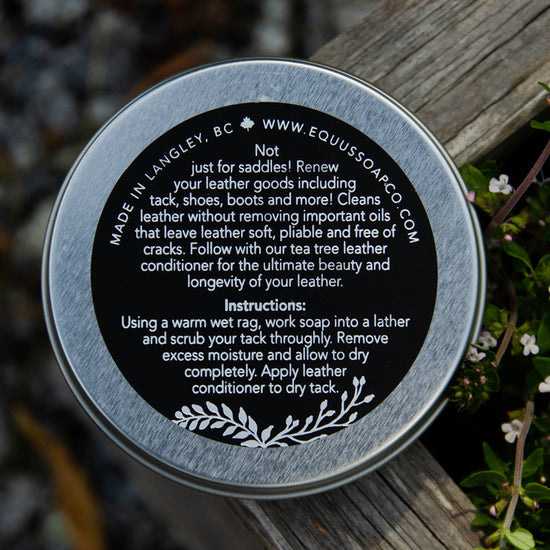 Our Equus Saddle Soap is has been formulated with natural ingredients to ensure its multi use purposes. Most saddle soaps contain lye, sodium hydroxide (chemical base) which can cause the leather to dry out and crack over the long term. Equus Saddle Soap is all natural.