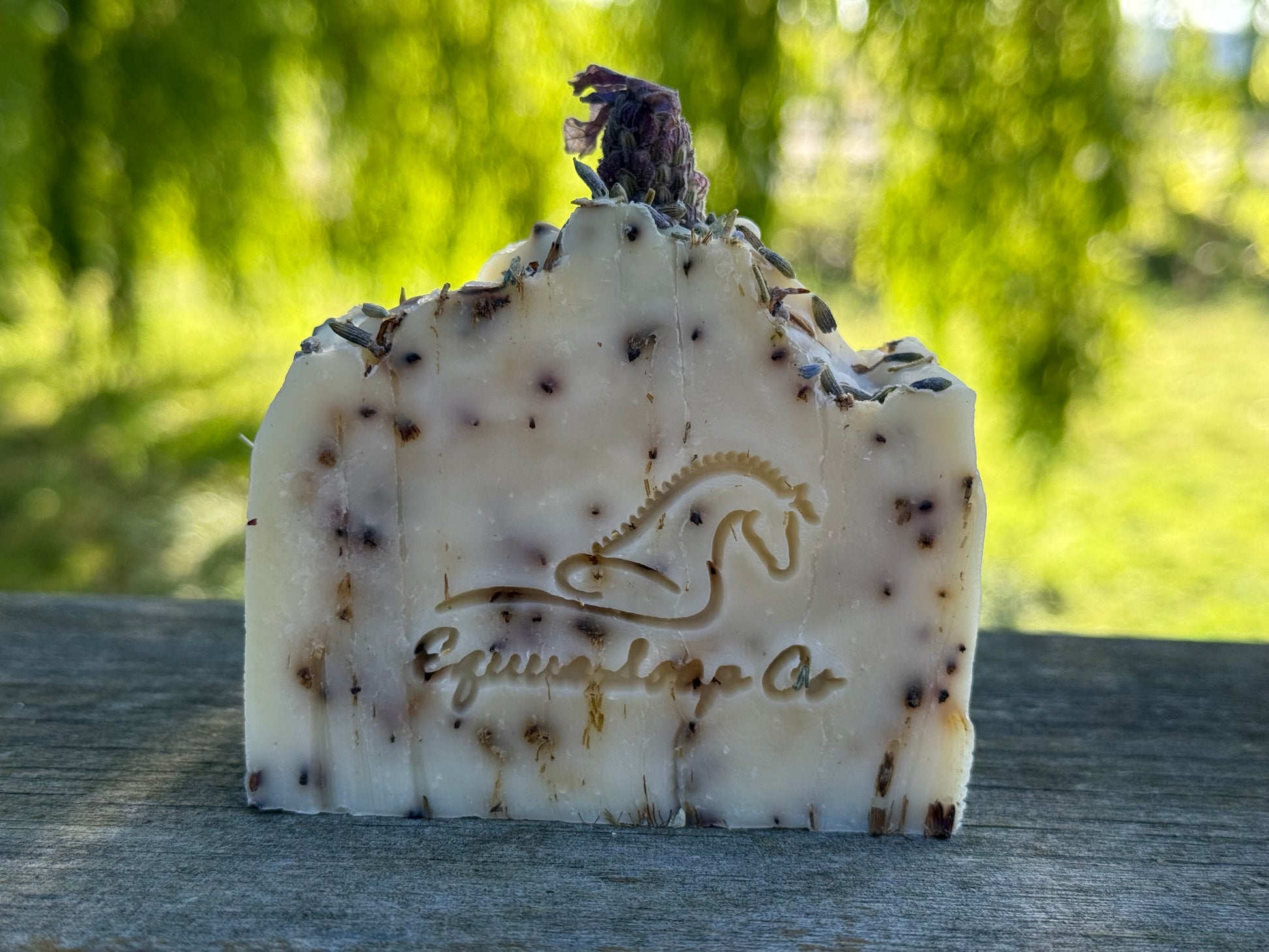 Ingredients: Coconut oil, palm kernel oil (100% sustainable), vegetable oil, glycerine, dried lavender flowers, rosemary spears, essential oils of: lavender & black pine.