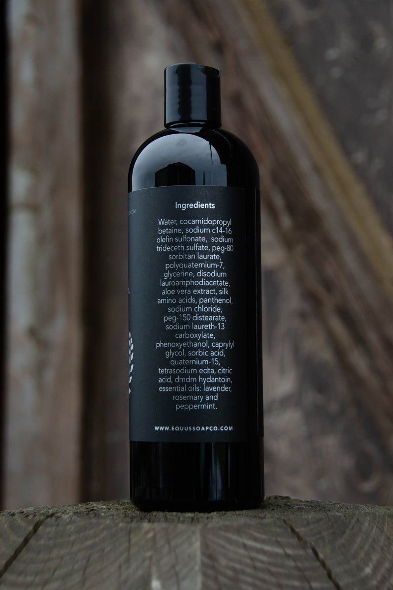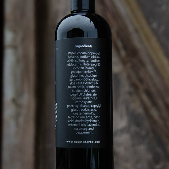 Ingredients: Water, cocamindopropyl betaine, sodium c14-16 olefin sulfonate, sodium trideceth sulfate, peg-80, sorbitain laurate, polyquaternium-7, glycerine, disodium lauroamphodiacetate, aloe vera extract, silk amino acids, pantethol, sodium chloride, peg-150 disterate, sodium laureth-13, carboxylate, phenoxethanol, caprylyl glycol, sorbic acid, quaternium-15, tetrasodium edta, citric acid, dmdm hydantoin, essential oils of: lavender, rosemary and peppermint